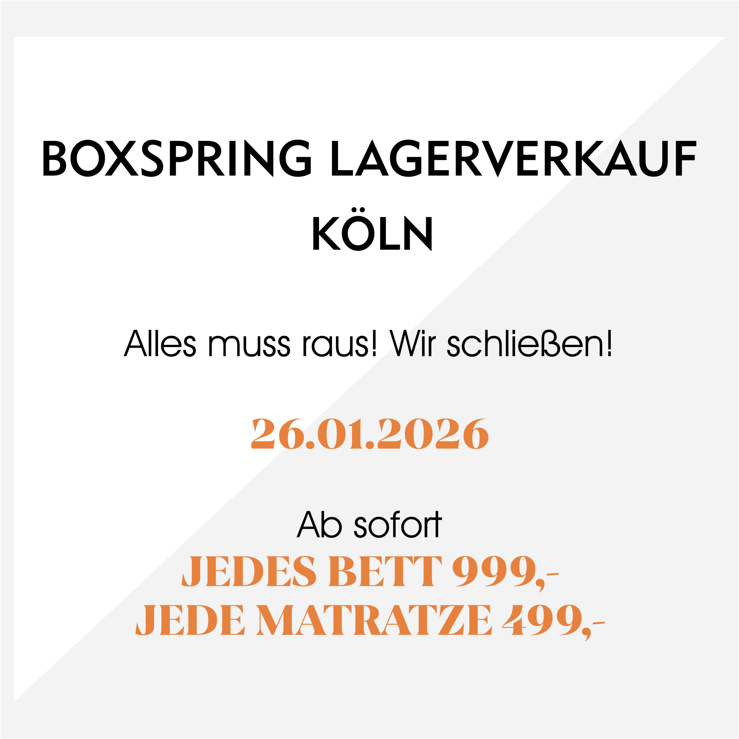 Großer Ausverkauf im Boxspring Lagerverkauf Köln – Wir schließen unsere Filiale